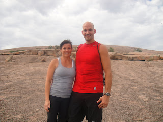 Both of the kids ended up on trips at the same time, so Jeremy and I thought it was a good idea to take advantage of that and get away. We were going to go to Mexico, but I was not okay with leaving the country with the kids in other states so we went to Fredericksburg and Austin. We love Austin and every time we go we find new, fun things to do. This trip we decided to go with a "best of Austin" theme. We took in best of restaurants, coffee shops, and boutiques. Totally recommend Shady Grove, Home Slice, Cedar Door and Jo's Coffee Shop! There are a couple of pictures of us at Hamilton Preserve, a historic natural swimming pool. It's about a mile hike to the pool but so worth it. It was beautiful! When we finished swimming we decided to hike the other trail which was fun until I saw a huge, black snake. That really freaked me out. I know snakes are out there and I'm okay with that I just don't ever want to see them. We also wanted to visit Fredericksburg because we hear so much about it but have never been. We spent the last day of our trip in Fredericksburg visiting wineries and walking around on main street. For whatever reason Fredericksburg equals heavy incense/candle burning. Seriously some of the stores were so bad I couldn't even walk in them! My favorite shop was a surf shop. In the picture I'm on some sort of balancing thing...so fun. Wish I could remember what it was because I want one. Finally, we decided to hike Enchanted Rock before heading home and loved it! Glad we decided to go.